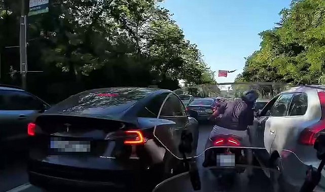 İstanbul'da bir motosiklet sürücüsü trafikte seyir halinde olduğu esnada kendisine arkadan çarpan araç sürücüsüyle tartıştı. Motosiklet sürücüsü daha sonra araç şoförüne tükürerek olay yerinden ayrıldı.