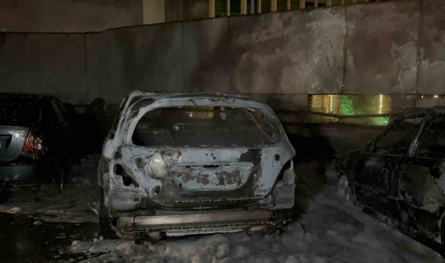 Sarıyer'de park halindeki 5 araç şüpheli bir şekilde alevlere teslim oldu