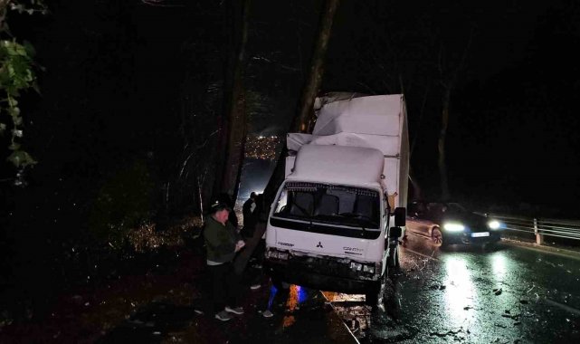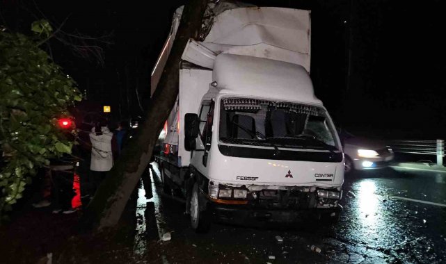 Sarıyer'de yağmur sonrası kayganlaşan yolda kontrolünü kaybeden kamyonet, yol kenarında bulunan ağaca çarptı. Kaza sonrası bölgede yoğun trafik oluştu.