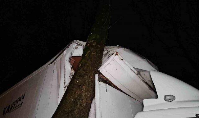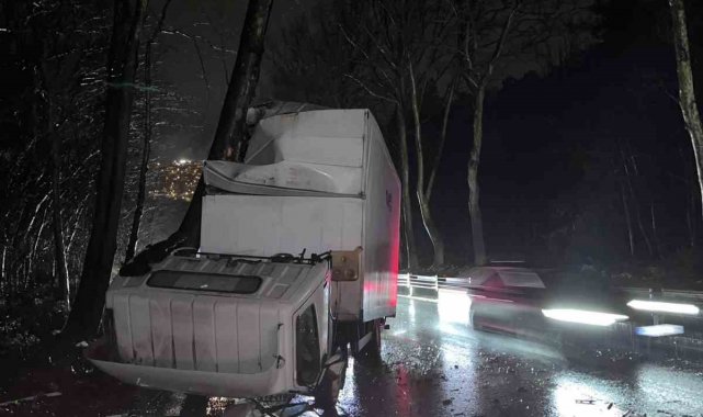 Kaza, 23.00 sıralarında Sarıyer Hacıosman Mahallesi Hacıosman Bayırı'nda meydana geldi. Edinilen bilgiye göre akşam saatlerinde etkisini gösteren sağanak sonrası kayganlaşan yolda sürücüsünün direksiyon hakimiyetini kaybettiği kamyonet, yol kenarında bulunan ağaca çarptı. Damperinin ağaca takıldığı kazada kamyonetin şoför kabini yere çarptı. İhbar üzerine olay yerine polis ekipleri sevk edildi. Polis ekipleri çevrede güvenlik önlemi alırken kaza sonrası bölgede trafik oluştu. Polis ekipleri trafiğin akışını kontrollü bir şekilde tek şeritten sağladı. Ağaca vuran kamyonetin önce şoför kabini kaldırıldı. Ardından kamyonetin de kaza alanından çekilmesi sonrası trafik akışı normale döndü.