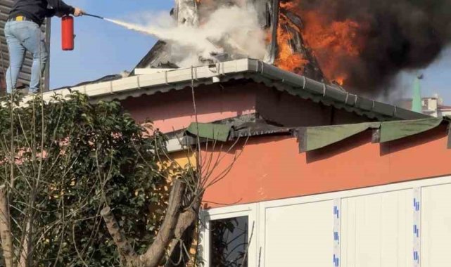 Sarıyer'de spor kulübünün çatısındaki baz istasyonu alev alev yandı