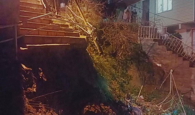 Sarıyer'de yağış nedeniyle bir binanın yanında bulunan merdiven çöktü. Mahalleli sokağa dökülürken, meydana gelen olayda ölen ya da yaralanan olmadı.