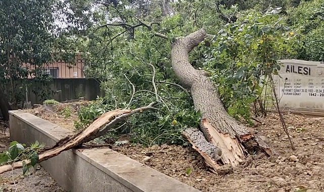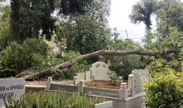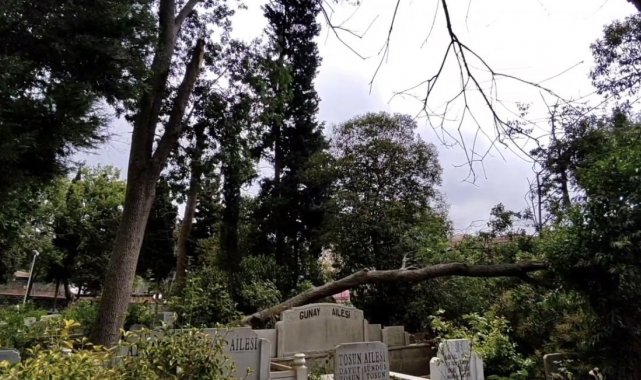 İstanbul Sarıyer'de yaş bir ağaç ortasından kırılarak mezarlıkların üzerine devrildi. Olay esnada mezarlıkta kimsenin olmaması muhtemel facianın önüne geçti.
