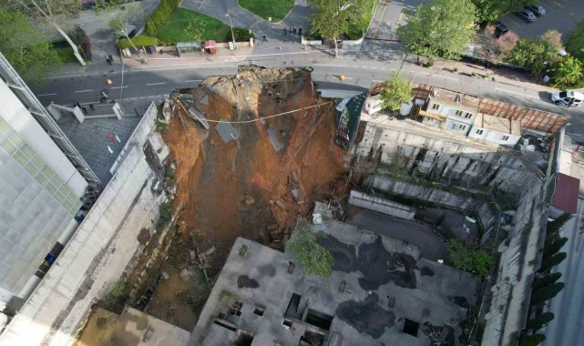 İstanbul Sarıyer'de gece saatlerinde uzun süredir devam eden inşaat çalışması alanının istinat duvarı çökünce yolda da çökme meydana geldi. Çökmenin ardından 100 metre ileride doğalgaz sıkışması sonucu küçük çaplı patlama oldu. Eski Büyükdere Caddesi trafiğe kapatılırken, çökmenin yaşandığı yol havadan görüntülendi.