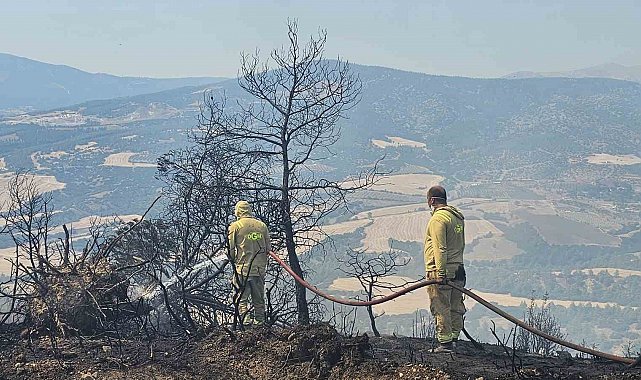 Denizli'nin Acıpayam ilçesinde yıldırım düşmesi sonucu orman yangını çıktı. Kavurucu sıcakta sarp araziye 2 kilometre hortum çeken ateş savaşçılarının çabaları sonucu yangın söndürüldü.