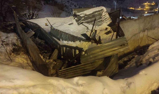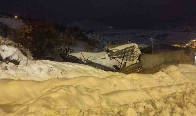 Sason'da yoğun kar yağışı nedeniyle iş yerinin çatısı çöktü
