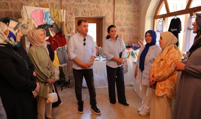 Dede Korkut Şehir Müzesi bahçesinde yer alan Arasta Bayburt hediyelik eşya satış alanlarını gezen Vali Eldivan ve eşi Meltem Eldivan, usta öğreticiler ve kursiyerlerle bir araya gelerek, yapılan çalışmaları yakından inceledi. Her bir ürünün özenle hazırlandığını, yapılan çalışmaların dikkat çektiğini belirten Vali Eldivan, "El emeği ve göz nuruyla hazırlanan bu eserler, hem kültürel mirasımızın yaşatılması hem de kadınlarımızın üretime katılımı açısından çok kıymetli. Emek veren tüm usta öğreticilerimizi ve kursiyerlerimizi yürekten kutluyorum" dedi.