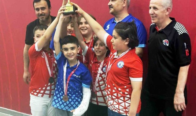 Turnuvada başarılı bir performans gösteren Şehit Selman Özay İlkokulu öğrencileri, kupalarını öğretmen ve antrenörleri Andan Apaydın ile birlikte kaldırdı.