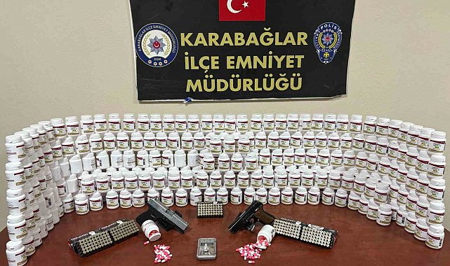 Karabağlar İlçe Emniyet Müdürlüğü Suç Önleme ve Soruşturma Büro Amirliği ekipleri, M.A.'nın (24) ilçede uyuşturucu madde ticareti yaptığını belirleyerek harekete geçti. Uyuşturucu madde kullanımı ve ticaretinin yanı sıra hırsızlıktan da suç kaydı olduğu belirlenen M.A., kısa sürede yakalanırken, sattığı uyuşturucu maddelerin bir dükkanda muhafaza edildiği belirlendi. Adreste yapılan aramada, 13 bin 776 adet uyuşturucu nitelikli sentetik hap, bir miktar esrar maddesi, 1 hassas terazi ile 2 ruhsatsız tabanca ve 500 fişek ele geçirildi.