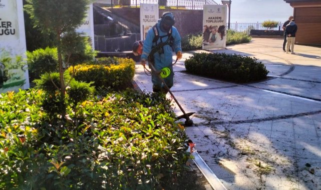 Kocaeli'de, 65 yaş ve üzeri vatandaşların hizmet aldığı Saygınlar Kulübü çevresinde düzenli olarak çim biçimi ve bakım çalışmaları gerçekleştiriliyor.