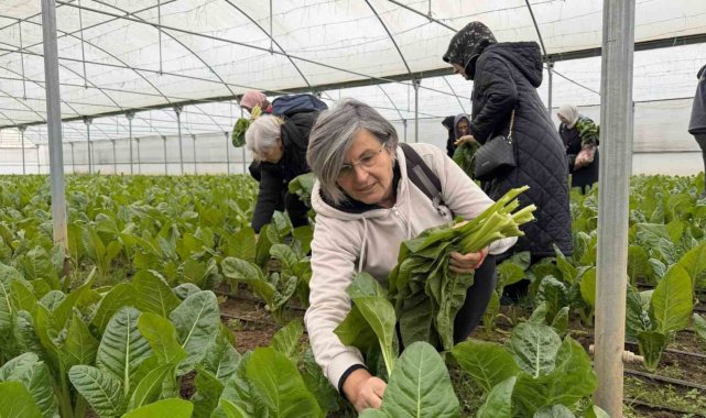 Burada kışlık sebze üretimi hakkında bilgi alan katılımcılar, daha sonra pazı ve karalahana hasadı yaptı.