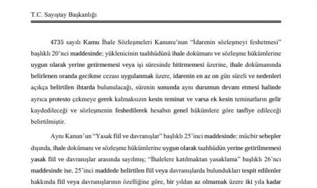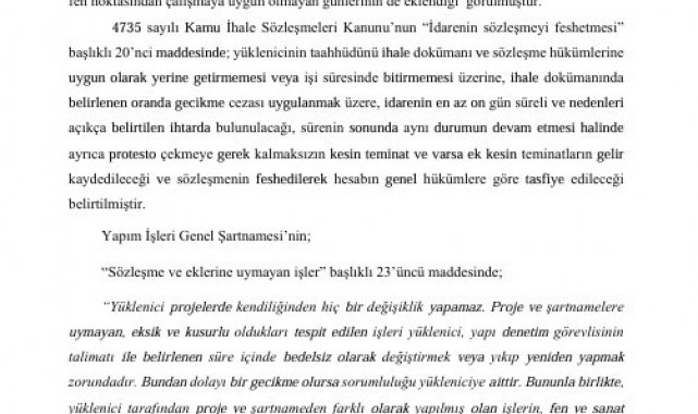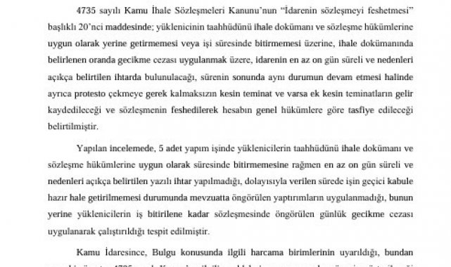 Rapor, sözleşmesi feshedilen yükleniciler hakkında mevzuatın zorunlu tuttuğu ihalelere katılmaktan yasaklama işlemlerinin yapılmadığını da ortaya koydu. Belediyenin yetkisi olmasına rağmen bazı ilçelerde imar uygulamalarını denetlemediği, yüklenicilere ödeme yapılırken "vadesi geçmiş vergi borcu yoktur" belgelerinin kontrol edilmediği ve bu nedenle mevzuata aykırı ödemeler gerçekleştirildiği belirtildi.