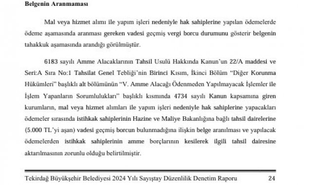 "Vergi borcu yoktur" belgesi kontrol edilmeden ödeme yapılmış