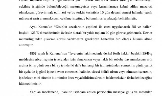Denetimde ayrıca personel takip sistemine kaydı olmayan bir personele fazla mesai ücreti ödendiği, ek özel hizmet tazminatı puantajlarının hatalı düzenlendiği ve yevmiye defterlerinde boş sayfa bırakıldığı belirtildi. Sayıştay, tespit edilen aykırılıkların ihale, mali işler, personel, imar ve muhasebe alanlarında yoğunlaştığını bildirdi.