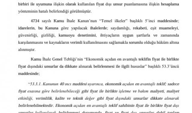 Bir başka bulgu da, yağmursuyu şebekesi ihalesinde benzer iş grubu kapsamına girmeyen havaalanı pisti ve apron işleri için iş deneyim belgesi talep edildiği, bu nedenle ihaleye doküman indiren 45 istekliden yalnızca birinin katılım yeterliliğine sahip olduğu tespit edildi. Sayıştay, bunun rekabeti daralttığını ve fiyat dışı unsur puanlamasında da hatalı yöntem kullanıldığını kaydetti.