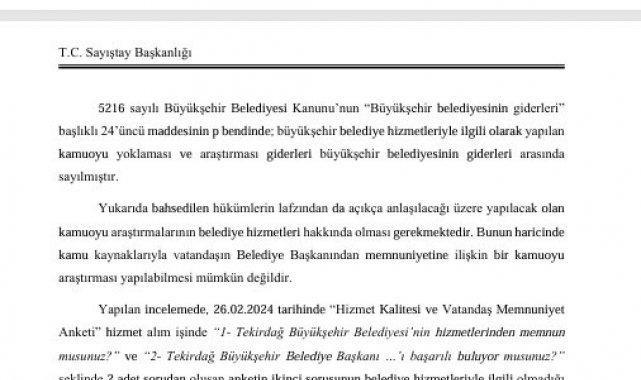 Sayıştay, CHP'li Tekirdağ Büyükşehir Belediyesi'nde 19 usulsüzlük tespit etti