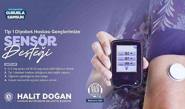 Sosyal belediyecilik anlayışıyla her geçen gün daha fazla gencin yanında olmaya devam eden Samsun Büyükşehir Belediyesi gençlerin sağlıklı bir yaşam sürmeleri adına da çalışmalarını sürdürüyor. Bu kapsamda Büyükşehir Belediyesi 0-2 yaş arasındaki çocuklar ile 18-25 yaş arasındaki tip 1 diyabet hastası gençlere başvuru şartlarını yerine getirdikleri takdirde sensör desteği sağlayarak hayatlarını daha sağlıklı bir şekilde sürdürmelerine olanak tanıyor.