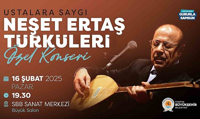 Büyükşehir Belediyesi, yüzlerce eseriyle gönüllerde yer edinen Bozkırın Tezenesi Neşet Ertaş anısına Neşet Ertaş Türküleri Özel Konseri ile 16 Şubat Pazar günü saat 19.30'da SBB Sanat Merkezi'nde vatandaşlarla buluşacak.
