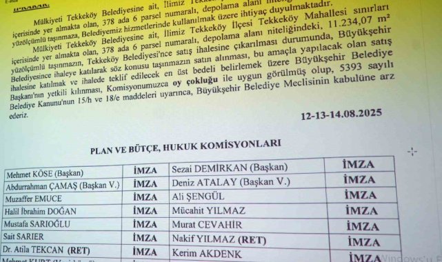 SBB Meclis Başkanvekili Nihat Soğuk başkanlığında meclis binasında yapılan toplantıda, Tekkeköy Belediyesi'ne ait 378 ada 6 parselde yer alan 11 bin 234 metrekarelik depolama alanının SBB tarafından satın alınması için ihaleye girme yetkisi gündeme geldi.