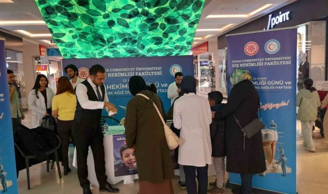 Sivas'ta 22 Kasım Ağız ve Diş Sağlığı Haftası dolayısıyla Cumhuriyet Üniversitesi Diş Hekimliği Fakültesi öğrencileri vatandaşları bilinçlendirmek için stant kurdu.