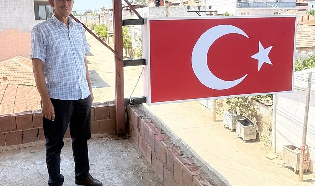 Manisa'nın Ahmetli ilçesine bağlı Kargın Mahallesi'nde yenilenen muhtarlık seçimleri sonra göreve seçilen Muhtar Yüksel Aydın, ilk maaşıyla 2,5 metrelik Türk Bayrağı yaptırdı.