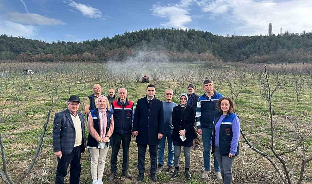 Bilecik'in Osmaneli ilçesinde bilinçli tarım eğitimleri devam ederken, şeftali bahçelerinde ilaçlama uygulamalı olarak gösterildi.