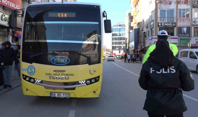 Aksaray'da şehir içi ulaşımı sağlayan minibüsler polis ekiplerince aralıksız denetleniyor.