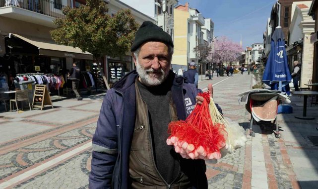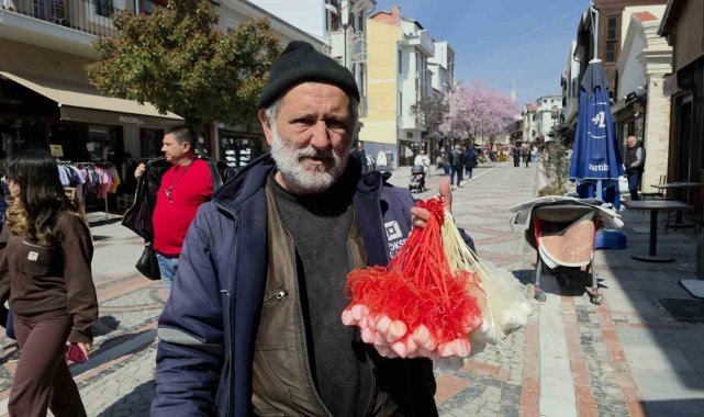 Çankırı'dan yola çıkarak Edirne'ye gelen Serkan Bektaş, caddelerde kokulu kaya tuzu kokusu satıyor.
