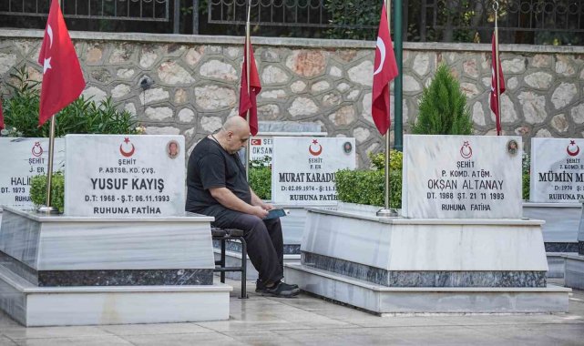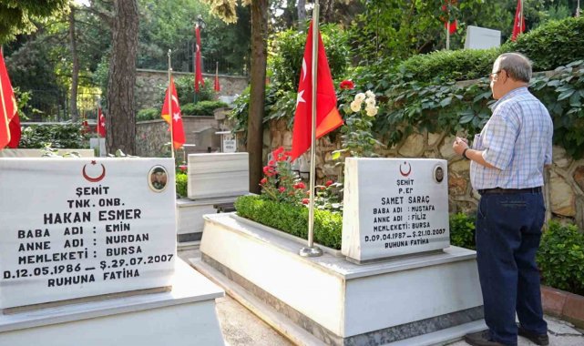 Bursa'da şehit aileleri, bayramın ilk günü Pınarbaşı Garnizon Şehitliği'ni ziyaret etti.