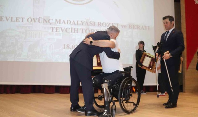 18 Mart Şehitleri Anma ve Çanakkale Zaferi'nin 110. yıl dönümü nedeniyle İzmir'de, 13'ü gazi ve 12'si şehit yakını olmak üzere 25 hak sahibine Devlet Övünç Madalyası Rozet ve Beratı verildi.