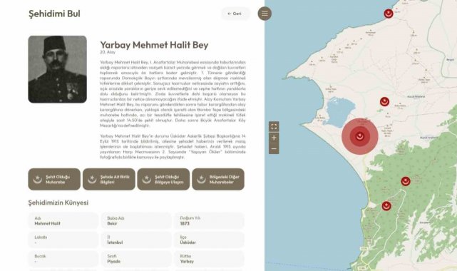 Türk milletinin destan yazarak tarihe adını altın harflerle kazıdığı bir zaferle sonuçlanan Çanakkale Savaşları'nın kahramanlarının hikayeleri, Çanakkale Savaşları Gelibolu Tarihi Alan Başkanlığının "Şehit Bilgi Kapısı" projesi ile gün yüzüne çıkıyor.