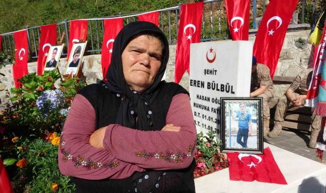 Tören sonrası konuşan ve günler geçtikçe acısının daha da büyüdüğünü dile getiren Eren Bülbül'ün annesi Ayşe Bülbül, "Günler geçtikçe benim acım daha da büyüyor. Zaten üzüntüm de belli. Zaman ilerledikçe içimdeki acı dinecek sandım. İçimdeki acı git gide büyüyor. Yapacak bir şeyim yok. Acı acıdır. Yıllar geçse de ben evladımı unutamam. Evladımla gurur duyuyorum. Benim evladım küçücüktü. Benim evladımı benden kopardılar, yakamdan aldılar. Büyük bir acı ve hüzün. Yıllar geçse de onu unutmam. Bu acıyla ölüp, evladıma kavuşacağım günü bekliyorum. İnşallah ümit ettiğimiz gibi olur. Evlatlarımız ister görevi başında ister ocağının başında olsun. Görevini yapıyor ve maalesef şehit ediliyor. Evinin kapısının önünde olan da şehit ediliyor. Terör bitsin, bitmesini istiyorum. Benim içimde yanan ateşi ben biliyorum. Onun için terör bitsin diyorum. İnşallah da biter" dedi.