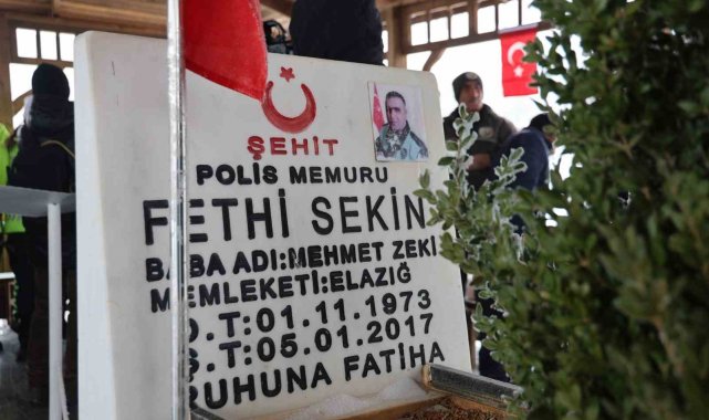 İzmir'de 9 yıl önce adliye önünde PKK'lı teröristlerle kahramanca mücadele ederek şehit düşen Polis Memuru Fethi Sekin, memleketi Elazığ'da kabri başında anıldı.