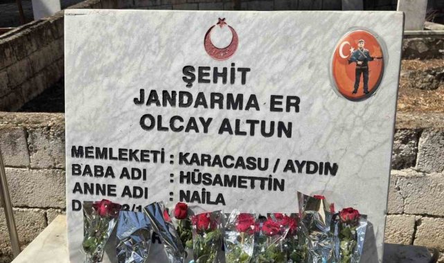 Batman'da vatani görevini yaptığı sırada şehit olan Jandarma Er Olcay Altun şehadetinin yıl dönümünde Aydın'ın Karacasu ilçesindeki mezarı başında anıldı.