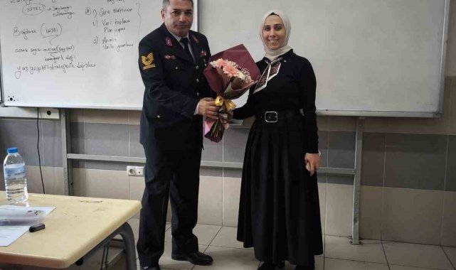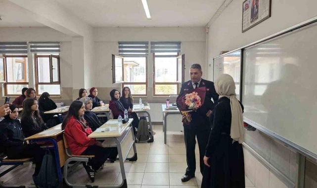 Bursa İl Jandarma Komutanlığı, Mardin'de 1987 yılında şehit olan Jandarma Çavuş Atilla Dişkeser'in matematik öğretmeni olan kızı Derya Dişkesir'i öğretmenler gününde unutmadı.