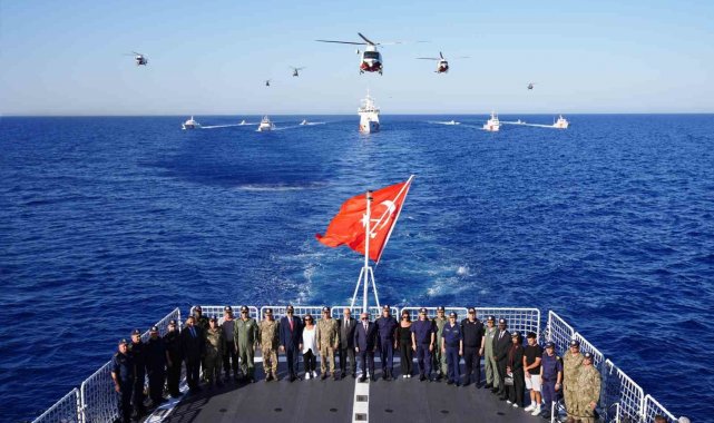Arama kurtarma faaliyetlerinin tamamlanmasının ardından tatbikata katılan hava ve deniz araçları, TCSG Yaşam'ın önünde selamlama geçişi yaptı.