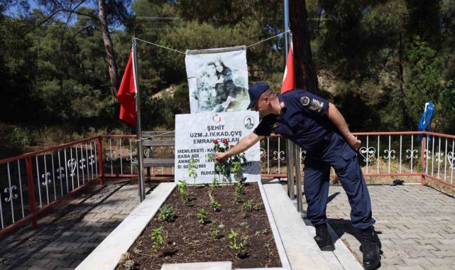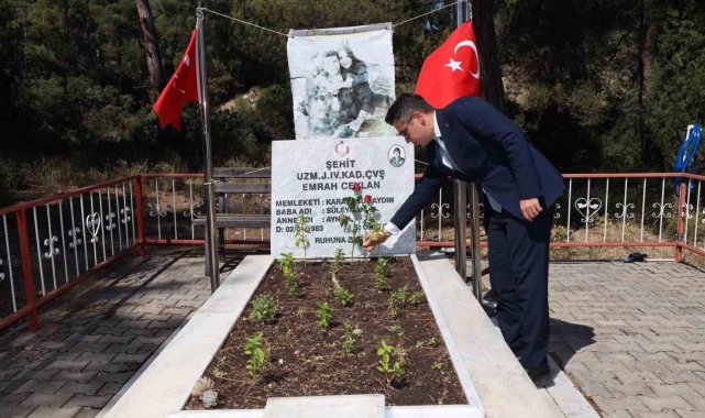 Aydın'ın Karacasu ilçesine bağlı Esençay Mahallesi'nde Şehit Uzman Jandarma IV. Kademe Çavuş Emrah Ceylan, şehadetinin yıl dönümünde mezarı başında dualarla anıldı.