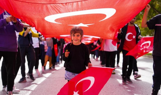 Kutlamalar kapsamında Naci Topçuoğlu Caddesi üzerinde bulunan Pet Park 1 önünden başlayan yürüyüş, ellerinde Türk bayrakları taşıyan öğrenciler, vatandaşlar ve protokol üyeleriyle birlikte Tuncay Kara Caddesi'ne kadar devam etti. Cadde boyunca marşlar eşliğinde yürüyen kortej, Cumhuriyet'in 102. yılına yakışır bir birlik ve beraberlik tablosu oluşturdu. Yürüyüş güzergâhı boyunca caddeyi dolduran katılımcılar, ellerindeki bayraklarla görsel bir şölen oluşturdu. "10. Yıl Marşı", "İzmir Marşı hep bir ağızdan söylendiği yürüyüşte, vatandaşlar balkonlardan alkışlarla korteje eşlik etti. Ardından Fatih Toker ve orkestrası sahne aldığı konserle, gençler bayram coşkusunu doyasıya yaşadı.