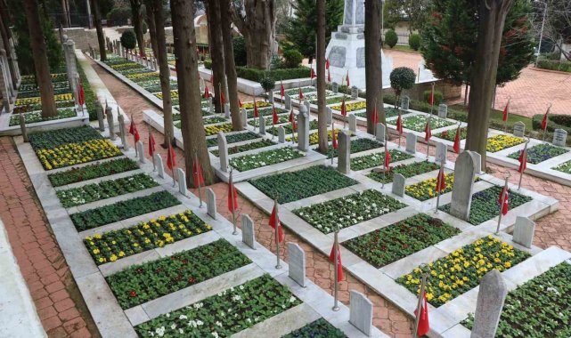 Şehitlikte çiçekler açtı