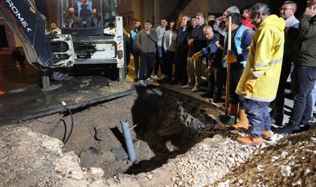 Şehrin büyük kısmı susuz kaldı, başkan sabah saatlerine kadar çalışmayı yerinde takip etti