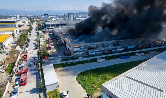 Yangının boyutu ve ekiplerin müdahalesi dron ile görüntülendi. Görüntülerde fabrikanın çatı kısmının tamamen yandığı, itfaiye ekiplerinin alevlere farklı noktalardan müdahale ettiği görüldü.