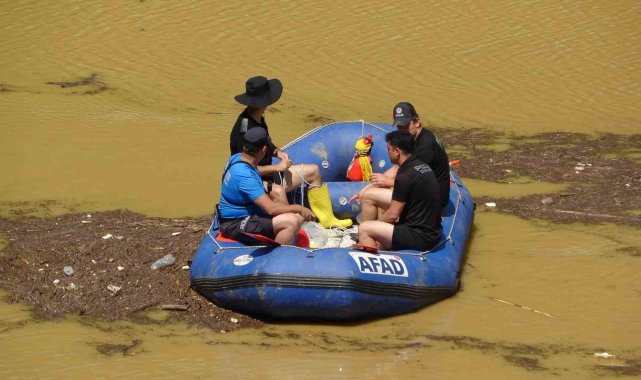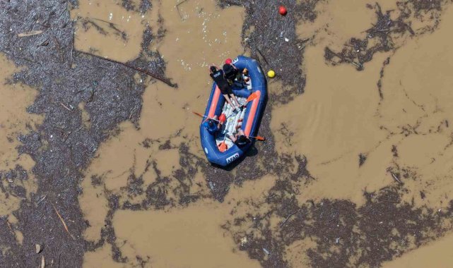 Sel sonrası dere ve göl suyunun balçık ve çamurla kaplı olması çalışmaları güçleştirirken, Hüseyin Aydın'ın eşofmanları dün yapılan çalışmalarda dereye düştüğü yerden 400 metre mesafede bulunmuştu.