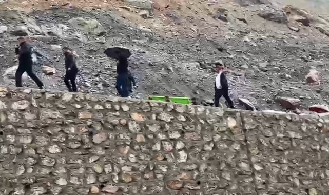 Hakkari'nin Derecik ilçesinde taşkın nedeniyle kapanan yolda mahsur kalan 18 yaşındaki gencin cenazesi, iş makinesi yardımıyla mezraya ulaştırıldı.