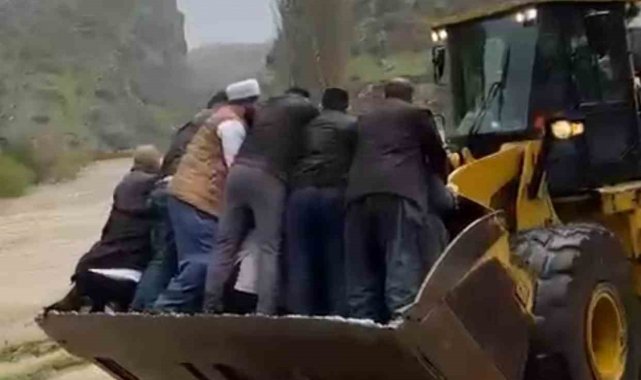 Bölgeye sevk edilen bir iş makinesi, ulaşıma kapanan noktada devreye girdi. Musa Dayan'ın tabutu ve beraberindeki yakınları, iş makinesinin yardımıyla su birikintisinden karşıya geçirildi. Vatandaşların cep telefonu kameralarıyla kaydettiği geçişin ardından cenaze, nakil aracına alınarak mezraya götürüldü.