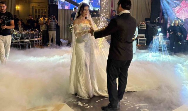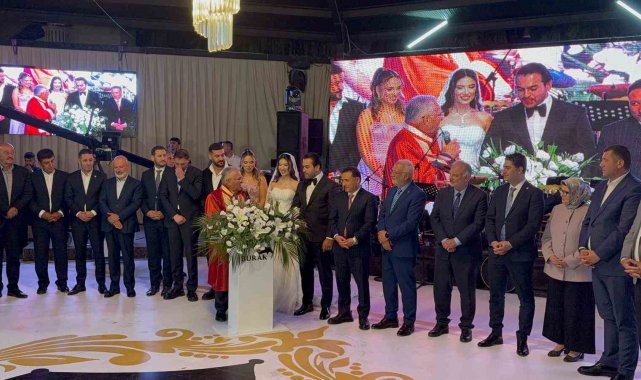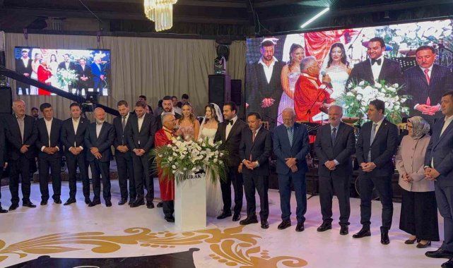 Düğüne katılan protokol üyeleri, genç çifte mutluluklar diledi.