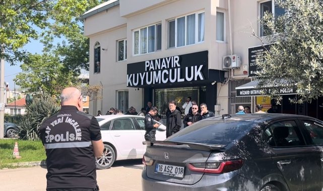 Bursa'nın merkez Osmangazi ilçesi Panayır Mahallesinde bulunan bir kuyumcuyu soymak için gelen şüpheli selam vererek girdiği dükkanda silah çekip, kuyumcunun önüne çanta attı. Altınları doldurmasını isteyen kuyumcuyla bağrışan soyguncu, kuyumcunun arka bölümden içeri giren kardeşinin "sakin sakin" demesine aldırmadı. Bağrışmalar üzerine panikleyen şüpheli, giderayak kuyumcuya ateş açtı. Para sayma makinasına isabet eden kurşun nedeniyle yara almayan kuyumcu, panik butonuna basıp 112 ekiplerinden yardım istedi. Korku dolu anlar güvenlik kamerasına saniye saniye yansıdı.