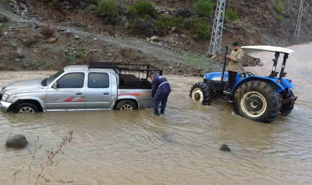 Etkili olan selle birlikte yolun suyla kaplandığını ifade ederek, " Gördüğünüz bu yol yağmurdan sonra böyle oldu. Yağmur yüzünden kayalar devrildi. Ben de ahırı kontrol etmeye geldim. Aracım mahsur kaldı. Sağ olsun traktör beni kurtardı. Geçen sene öyle değildi bu sene çok yağmur yağmasıyla birlikte bu aralar böyle oldu" dedi.