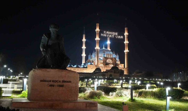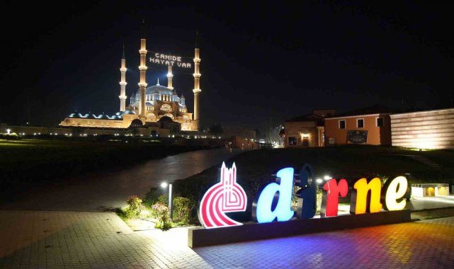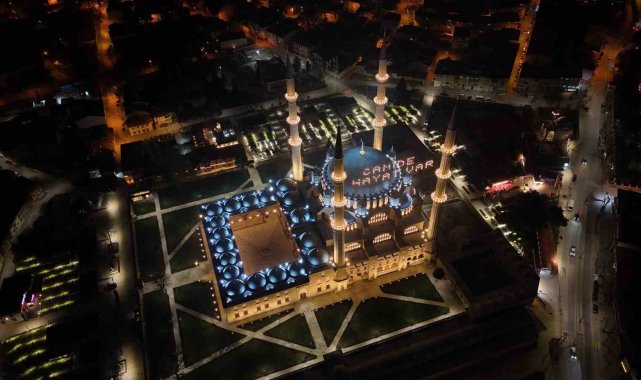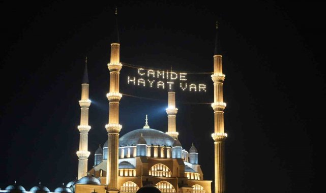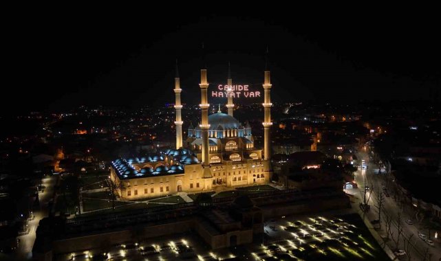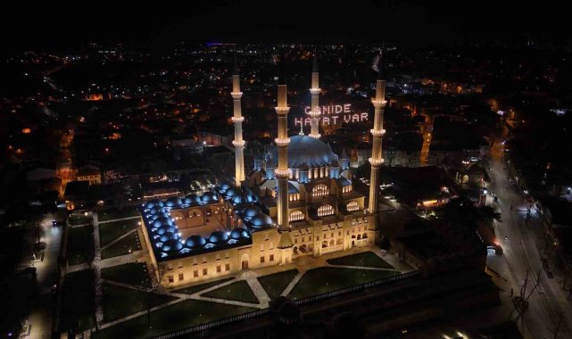 Edirne'de Ramazan ayının manevi atmosferi Selimiye Camii'ne asılan yeni mahya yazısıyla bir kez daha hissedildi. Daha önce minareler arasında "Merhaba ya şehri Ramazan" yazısı yer alırken, bu kez "Camide Hayat Var" mesajı asıldı.