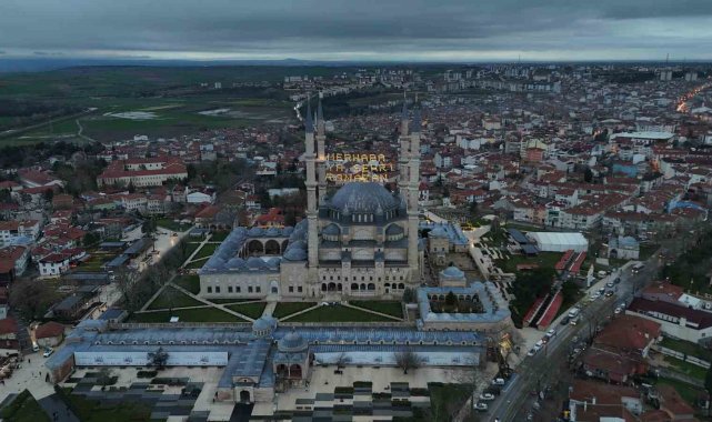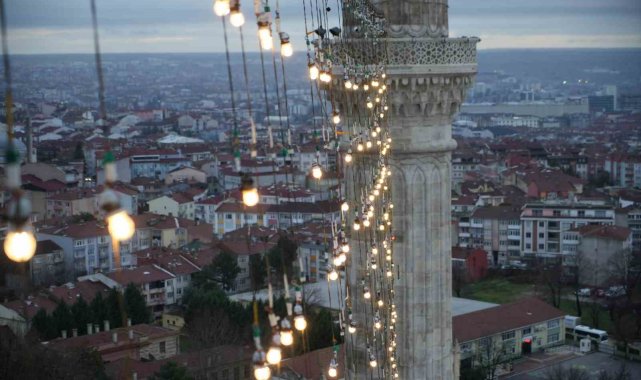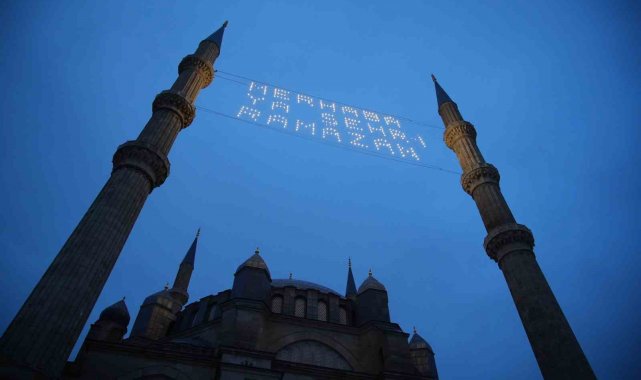Selimiye Camii'nin minareleri, Ramazan ayının gelişiyle birlikte mahya ile süslendi.