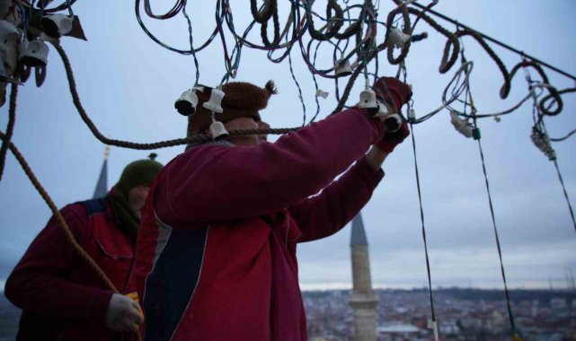 Selimiye Camii'nin minarelerine Ramazan mahyası asıldı